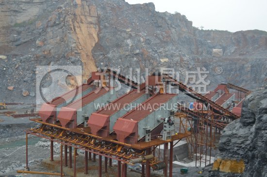 值得一提的是,由郑州鼎盛公司总承包的长九日产2万吨砂石生产线是我国砂石生产线规模化、规范化、环保化配置的典范,为了确保生产过程的节能环保,该生产线采用了两段一闭路生产工艺,一段破碎设备采用大型颚式破碎机,二段破碎采用国内日产量、的大型单段反击破碎机,并在头道工序喂料端采用具有除土筛分功能的振动给料机,大大提高了生产效率,而且每个生产环节都配有除尘装置,环保型强,更为重要的是,这种工艺生产出来的砂石成品骨料颗粒形状好、洁净度高、石子强度高,非常适合高等级基建对骨料的要求。